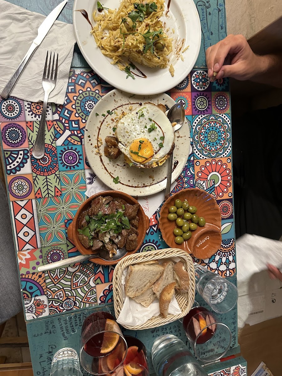 We found this place based on Google Reviews. We rated this restaurant five stars. We had the grilled sea bream and the grilled Octopus plates. We started with some passion fruit sparkling sangria and a glass of house white wine. For dessert we had the rice pudding and the lemon meringue pie. The stairs from above by from the Cathedral are closed, so approach the restaurant from the bottom of the stairs. Prices are quite reasonable.